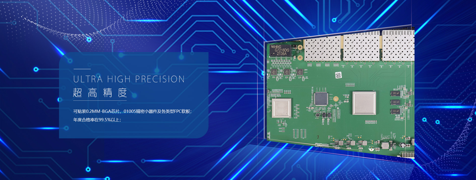 可貼裝0.2MM-BGA芯片、01005精密小器件及各類型FPC軟板,公司具備完備的質(zhì)量體系和行業(yè)所需全面的檢驗設(shè)備,年度合格率統(tǒng)計均在99.5%以上。